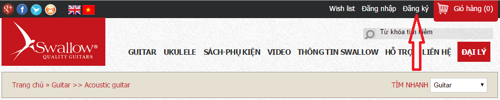 Đầu tiên bạn truy cập vào website swallowguitars.com