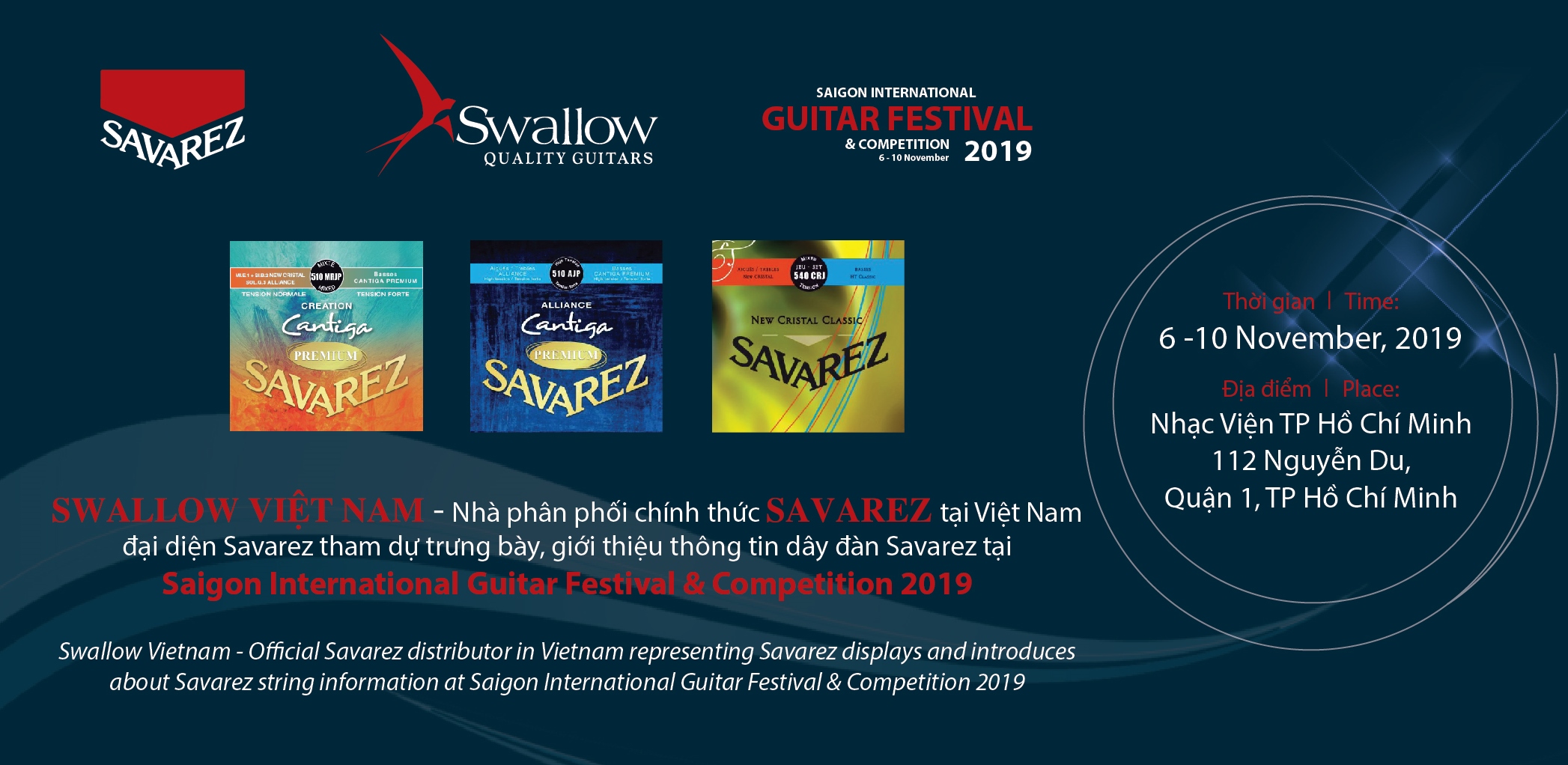Swallow is very pleased to represent Savarez to attend Saigon International Guitar Festival & Competition 2019 with the display and product introduction of the world-renowned quality string company Savarez. The string brand has a long history since 1770 in France and it is a string brand that almost every guitarist around the world loves and adores. Sincerely welcome guitarists and people who love the guitar to attend and visit the latest Savarez string product lines at the festival as well as enjoy contest programs, concerts and activities. The festival takes place at Ho Chi Minh Conservatory of Music, 112 Nguyen Du, District 1, Ho Chi Minh City, from November 6th to November 10th, 2019.